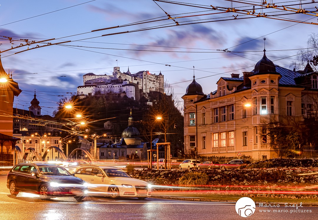 Natürlich darf das hoch über Salzburg liegende Wahrzeichen nicht fehlen, die Festung Hohensalzburg. Bei dieser Festung hat sich vom Bau eines Wohnturmes 1077 bis zur Öffnung für Touristen 1892 einiges getan. Diese jahrelange Geschichte kann man aber nur im Inneren der Festung bestaunen, ich hatte leider keine Zeit für einen Besuch des Inneren der Festung. Diese Festung bietet sich durch seine Lage hoch über Salzburg von vielen Punkten in und um Salzburg als Fotomotiv an.